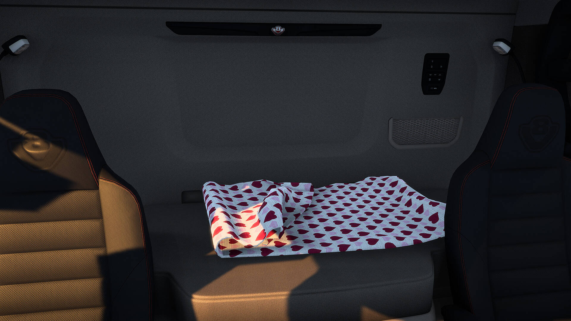 个人:完成14次或以上情人节礼物货物交付的玩家将获得一个独特的卡车世界成就,以及一个Hearts Blanket作为《欧洲卡车模拟器2》和《美国卡车模拟器》的Steam库存物品。